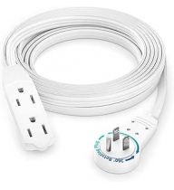 Maximm Cable 12 Ft 360° Rotating Flat Plug Extension Cord/Wire, 16 AWG Multi 3 Outlet Extension Wire, 3 Prong Grounded Wire - White - UL Certified