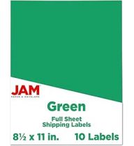 JAM PAPER Full Sheet Shipping Labels - Printable Sticker Paper - 8 1/2 x 11 - Green - 10 Full Pages/Pack
