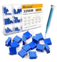 BOJACK 12 Values 60 pcs Variable Resistor 100 to 500K ohm 3296W Multiturn Trimmer Potentiometer Assortment Kit