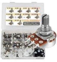 45 pcs Potentiometer Assortment 9 Values 1K, 2K, 5K 10K 20K 50K 100K 250K 500K 1M Horizontal Straight Legs Terminal A = logarithmic Audio Taper