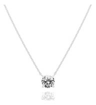 14K Gold Plated Crystal Solitaire 1.5 Carat (7.3mm) CZ Dainty Choker Necklace