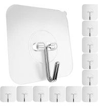 GLUIT Adhesive Wall Hooks for Hanging Heavy Duty 22 lbs Hooks for Walls No Damage, Towel Sticky Clear Hooks, Waterproof, Home, Bathroom, Kitchen, Office, and Outdoor 12 Pack
