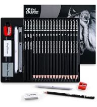 24PCS Professional Sketch Pencil Set – 5H to 14B Pencils, Charcoal Pencils, Art Supplies Kit with Erasers, Sharpener, Knife – Ideal Gift for Artists, Students, Kids, Beginners