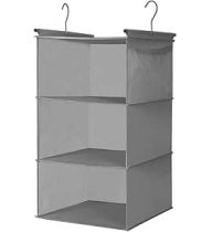 MAX Houser 3 Tier Shelf Hanging Closet Organizer, Space Saver,Closet Hanging Shelf with 2 Sturdy Hooks for Storage, Foldable (Grey)