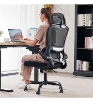 办公椅人体工学桌椅,300 磅(约 149.7 千克)家用网状办公桌椅带轮,舒适游戏椅,长时间高背办公椅(黑色)