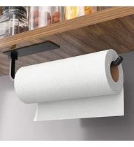 纸巾架 – 自粘或钻孔,哑光黑色,升级铝制厨房卷筒分配器橱柜下,比不锈钢更轻但更坚固!