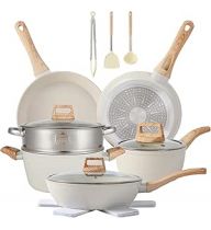 16 件锅和平底锅套装不粘炊具套装不粘烹饪套装(白色,16 件)