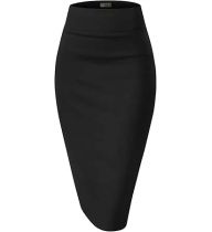 Hybrid & Company Women's Premium Nylon Ponte Stretch High Waist Pencil Suit Skirt Below Knee