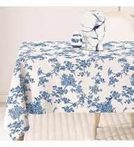 AnyDesign Blue Floral Tablecloth Chinoiserie Flower Square Fabric Table Cover for Spring Picnic Home Kitchen Dining Table, 60 x 60 Inch