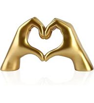 Gold Home Decor, Heart Hands Sculpture for Living Room Bedroom Bookshelf Shelves Office Desk Table, Resin Love Finger Statue, Memorial Gift for Families Friends