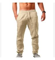 Men's Loose Lightweight Yoga Beach Trousers Casual Linen Sweatpants Plain Drawstring Elastic Waist Sports Pants