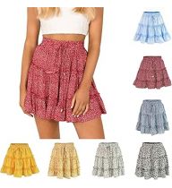 Short Pleated Skirts for Women High Wasited A-Line Floral Mini Skirt Flowy Beach Vacation Skirt Dressy Layered Skorts