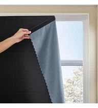 Autohesion Curtains for Windows,Bedroom Blackout Curtains for - Thermal Lnsulated No Drill Curtains Room Darkening Black Small Drapes, (1 Panels,35Wx48L inch-Black)