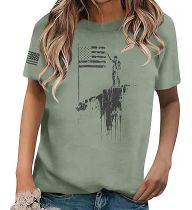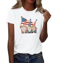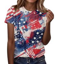 Womens Fashion Short Sleeve Tops Round Neck 4Th of July Patriotic American Flag Independence Day 2025 Tshirts