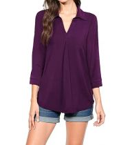 3/4 Length Sleeve Womens Tops Summer Blouse 2025 V Neck T Shirts Lightweight Work Vacation Ruched Elegant Tunic