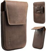 Gentlestache Leather Cell Phone Holster with Belt Clip, Flip Case for iPhone 14 13 Pro Max, Holder S22 Plus, Universal Pouch Large Phone,Darkbrown