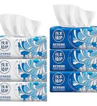 Small Facial Napkins In BAG, NOT In BOX, Toilet Paper, Disposable Facial Tissue, Material Native Wood Pulp Fiber NOT COTTON, White Facial Paper Tissue, 3-Ply, 6 Packs, 300 Sheets per Pack