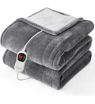 Homemate Electric Heated Blanket Twin - 62"x84" Heating Bed Blankets Throw with 10 Heating Levels 8 Hours Auto Off Fast Heating Over-Heated Protection Ultra Soft Warm Flannel ETL Certified Grey