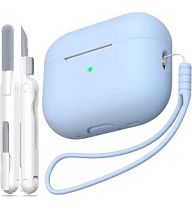 for AirPods Pro 2nd Generation Case Cover, Military Grade Anti-Fall Soft Silicone Shock-Absorbing for AirPods Pro Case Skin Touch with Keychain and Cleaning Kit, Front LED Visible, Sky Blue