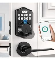 keyless Entry Door Lock deadbolt with Handle Set- Front Door Fingerprint Smart Locks with 2 Lever Handles-Keypad Code Deadbolt -App Control,Auto Lock,Easy to Install