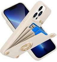 LAMEEKU Wallet Case with Card Holder for iPhone 13 Pro Max, 360°Rotation Ring Stand, Leather Kickstand Card Slots Case,RFID Blocking Shockproof Cover for Women and Men for Apple 13 Pro Max 6.7'' Beige