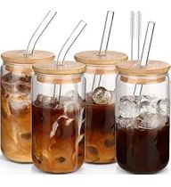 DWTS DANWEITESI Glass Cups with Lids and Straws 4 pcs,16oz Drinking Glasses Set for Coffee Bar Accessories,Iced Coffee Cups with Lids,Matcha Cup Glass Tumbler Reusable for Gifts