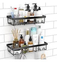 Moforoco Shower Caddy Shelf Organizer Rack, Self Adhesive Black Bathroom Shelves Basket, Home Farmhouse Wall Inside Organization and Storage Decor Rv Accessories, First Camper Apartment Essentials