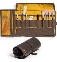 LOCHBY® Art & Electronic Organizer | EDC Roll-Up Tool Bag for Pen Lovers & Tech | Multi-Pocket with Elastic Loops for Pens, Cables, External Hard Drives | Stylish Waxed Canvas & Durable Aluminum Hooks