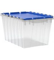 Akro-Mils KeepBox 12 Gallon Storage Container, Nesting and Stackable Plastic Storage Box with Lid Attached, Clear Tote for Garages, Closets, and Moving, 21-1/2" x 15" x 12-1/2", Clear/Blue