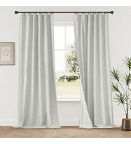 KangBang 108 Inch Linen Blackout Curtains for Sliding Patio Door, Back Tab Loop Pocket Light Blocking Draperies for Cottage High Ceiling, Neutral Minimalist Style(72x108, Greyish White,2 PCs)