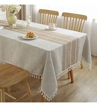 JIALE Tablecloths for Rectangle Tables, Cotton Linen Table Cloth Waterproof Tablecloth Wrinkle Free Farmhouse Dining Tables Cover, Soft Fabric Table Cloths with Tassels, Brown, 55" X 70", 4-6 Seats