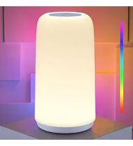 Touch Bedside Table Lamp, [Sleek Design & RGB Mode] 3 Way Dimmable Small Lamp for Bedroom, LED Lamp with Warm White Lights, Multi-Color Smart Nightstand Lamp for for Living Room Home Gifts