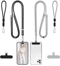 takyu Phone Lanyard, 2 Pack Adjustable Cell Phone Lanyard Crossbody Neck Strap & 2 Pack Phone Wrist Strap with 2 PcsTether Tabs Compatible for iPhone Android Smartphones-Black Grey