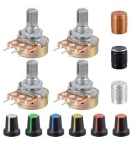 WH148 B10K Potentiometer 15mm Shaft 3Pins Variable Resistor 10K Single-Joint Linear Potentiometers with AG2 Plum Knob Cap and Aluminum Alloy Knobs (Pack of 35pcs)