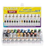 WH148 Potentiometer Kit 1K 2K 5K 10K 20K 50K 100K 250K 500K 1MK Ohm 15mm Shaft Single-Joint Linear Potentiometers 3Pins Set Variable Resistors with Plum Knob Cap and Aluminum Alloy Knobs