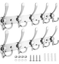 TICONN Wall Mounted Coat Rack, Five Heavy Duty Tri Hooks All Metal Construction for Jacket Coat Hat in Mudroom Entryway (Chrome, 2-Pack)