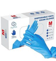 squish Disposable Gloves, 100Pcs Blue Vinyl Blend Exam Gloves Non Sterile, Powder Free, Latex Free - Cleaning Supplies, Kitchen and Food Safe(Pack of 100) (Blue Medium)