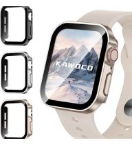 Kawoco 3 Pack Waterproof Case for Apple Watch Series 6 5 4 SE 40mm, Straight Edge Hard PC Cover with Tempered Glass Screen Protector, Protective Bumper for iWatch Case 40 mm Black/Silver/Starlight