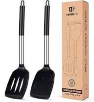 Pack of 2 Silicone Solid Turner, Non Stick Slotted Kitchen Spatulas, High Heat Resistant BPA Free Cooking Utensils, Ideal Cookware for Fish, Eggs, Pancakes(Black)