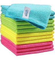 HOMEXCEL Microfiber Cleaning Cloth,12 Pack Cleaning Rags, Cleaning Towels with 4 Color Assorted, 11.5"X11.5"(Green/Blue/Yellow/Pink)