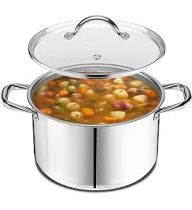 Stainless Steel Stockpot with Tempered Glass Lid 5 Quart, Durable 18/0 Stainless Steel, Impact-Bonded Base for Even Heating, Riveted Handles, Oven & All Stove Compatible, Safe Up To 500°F (260°C)