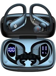bmani Wireless Earbuds Bluetooth Headphones 48hrs Play Back Sport Earphones with LED Display Over-Ear Buds with Earhooks Built-in Mic Headset for Workout Black