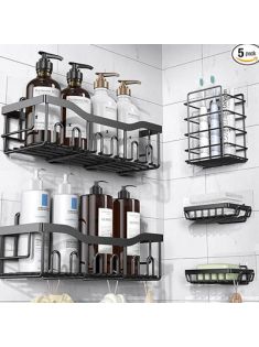 EUDELE Shower Caddy 5 Pack,Adhesive Shower Organizer for Bathroom Storage&Home Decor&Kitchen,No Drilling,Large Capacity,Rustproof Stainless Steel Bathroom Organizer,Shower Shelves for Inside Shower