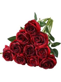 Nubry Artificial Silk Rose Flower Bouquet Lifelike Fake Rose for Wedding Home Party Decoration Event Gift 10pcs (Wine Red)