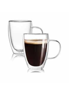 12 Oz Double Walled Glass Coffee Mugs with Handle Set of 2,Insulated Layer Coffee Cups,Clear Borosilicate Glass Mugs,Gift for Cappuccino,Tea,Latte,Espresso,Hot Beverage