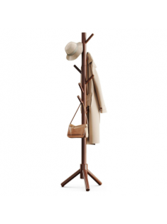 Sturdy Wooden Coat Tree with 8 Hooks, 3 Adjustable Sizes for Clothes, Hat Stand Used in Bedroom/Office/Entryway, Brown