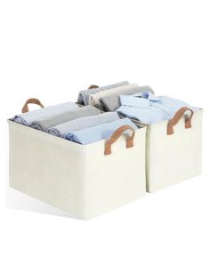 FLYBOX Collapsible Storage Bins for Shelves,Fabric Folding Storage Baskets with Handles,Medium Rectangle Closet Storage Bin Organizer for Organizing Clothes,Beige,2 Packs