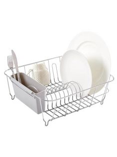 Sweet Home Collection 2 Piece Dish Drying Rack Set Drainer with Utensil Holder Simple Easy to Use Fits in Most Sinks, 14.5" x 13" x 5.25", Silver