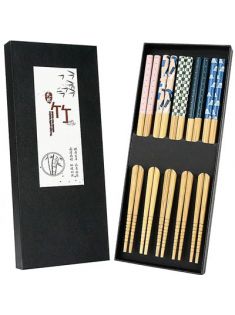 5 Pairs Japanese Natural Bamboo Chopsticks with Unique Print, Reusable Chopstick Gift Set for Sushi Rice Noodles, Chinese Tableware Washable for Dishwasher, 8.85 Inches Length