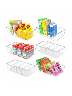 5 Pack Food Storage Organizer Bins Clear Plastic Removable Snack Organizer Pantry Organization Storage Racks with 3 Dividers, Kitchen